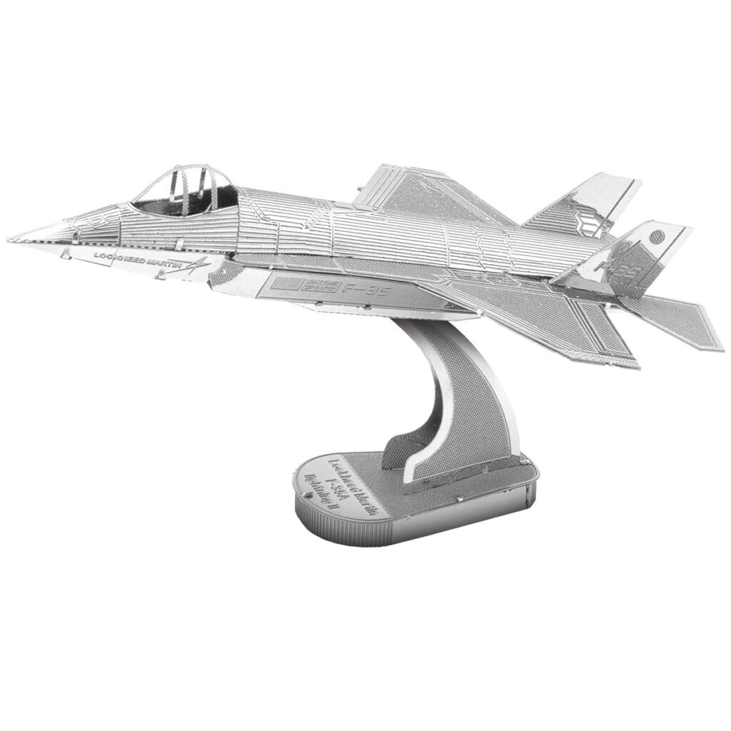 Tips: Kombinera F-35 med F-22 Raptor och SR-71 Blackbird för att skapa en komplett samling av moderna och historiska flygplansikoner från Metal Earth.
